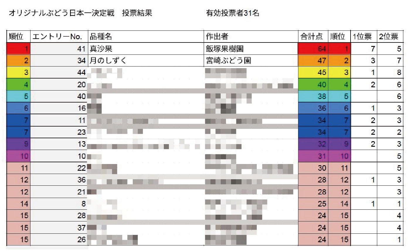 1位には日本一のぶどう農家として知られる飯塚果樹園の「まさか」