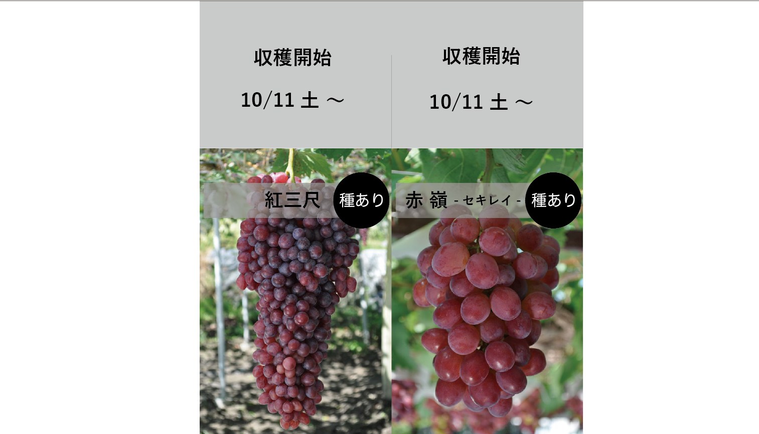 今夏の記録的な猛暑の影響により、「シャインマスカット」の収穫量が減少したため、例年より半月早い10月4日(土)または5日(日)をもちまして終了させていただくこととなりました。
